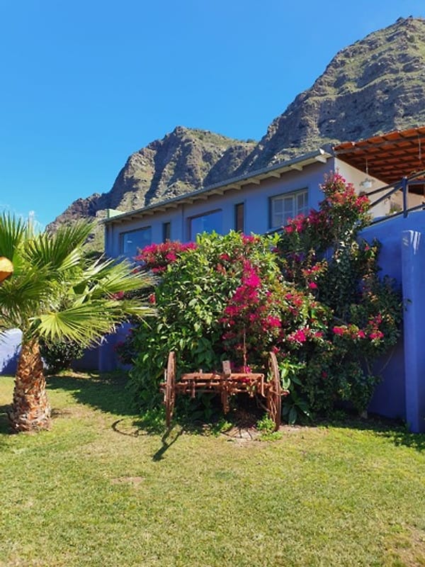 Von der Vorderseite hat man einen tollen Blick über Bananenplantagen bis zum Meer, das Ganze aus Panoramafenstern von allen Räumen aus. Das Ferienhaus liegt auf einer Höhe von knapp 150 Meter über dem Atlantik. Überall sind Dachfenster, bei Nacht kann man sogar vom Bett aus die Sterne zählen…