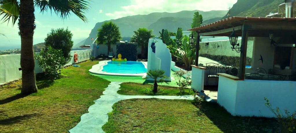 Auf der 8000qm großen abgeschlossenen Finca in grünen Nordwesten Teneriffas in der Gemeinde Los Silos liegt die außergewöhnliche und gemütliche Ferienwohnung. Ein Parkplatz befindet sich gleich unterhalb der Wohnung.