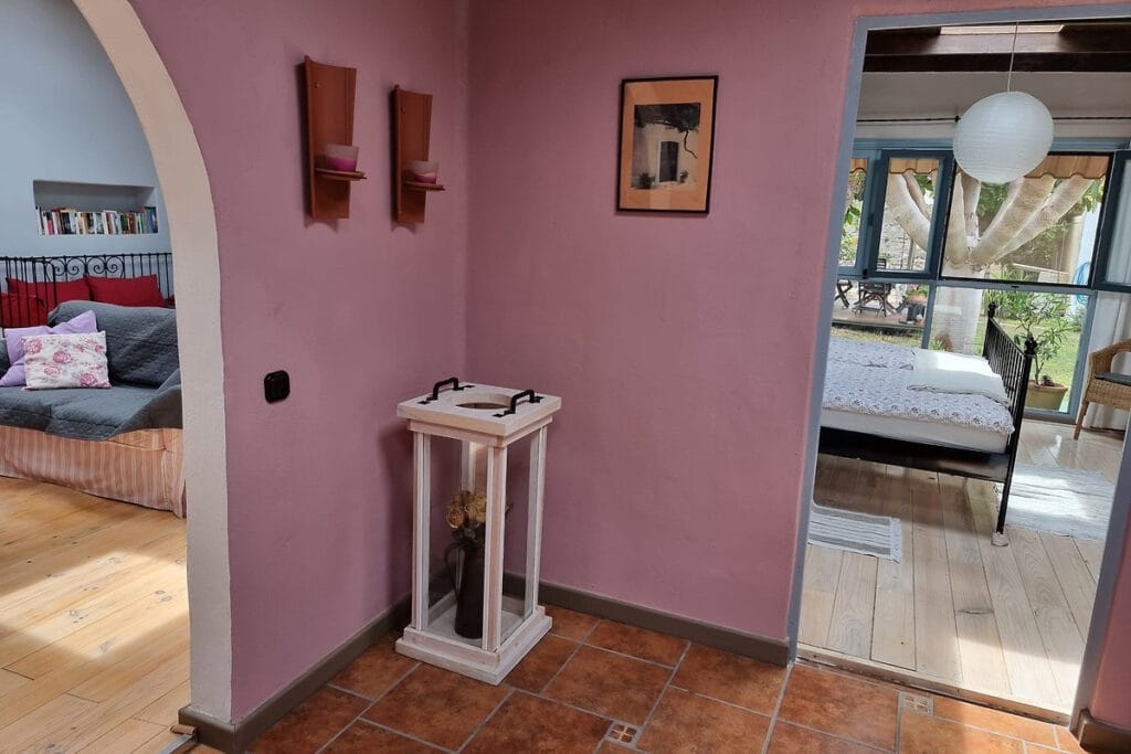 Schlaf-und Wohnzimmer haben Holzdielen. Für kühlere Tage wird auf Wunsch ein Gasofen zu Verfügung gestellt, die Gasflasche wird extra berechnet.