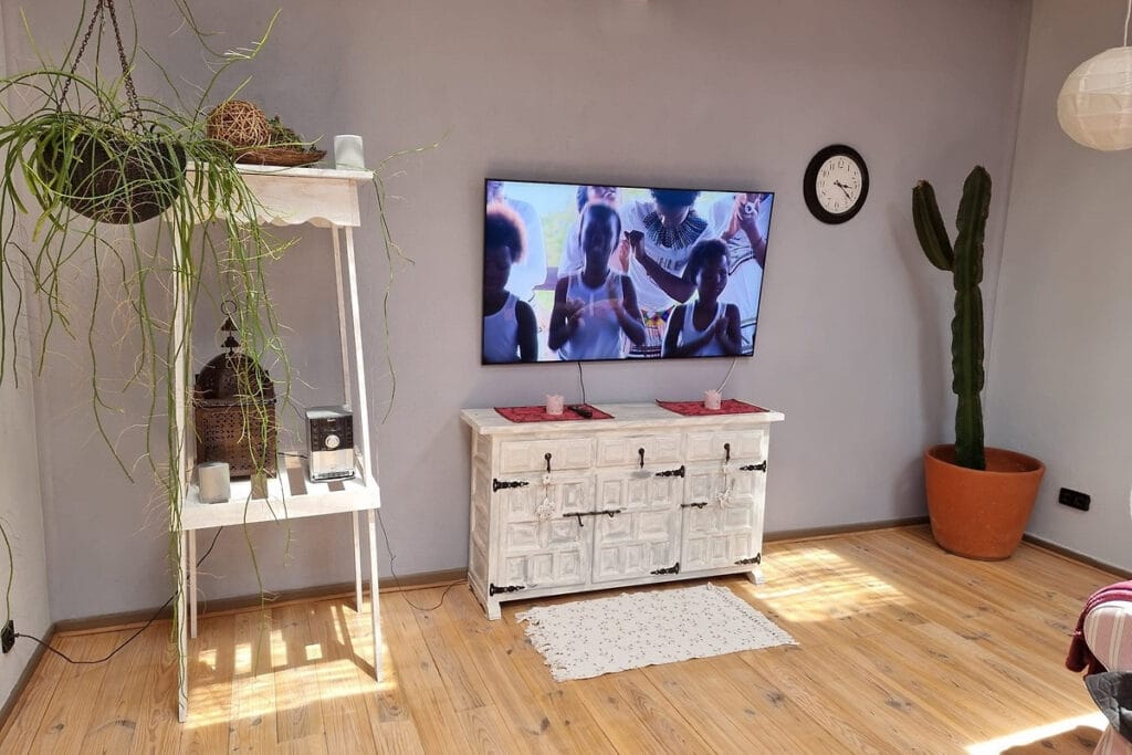 Ein Samsung-Flachbildfernseher mit 77„NeoQLED UltraHD 8K Quantum mit Internetanschluss und Netzprogrammen wie Netflix etc. sowie Bluetooth…..bringt Kinofeeling ins Wohnzimmer!