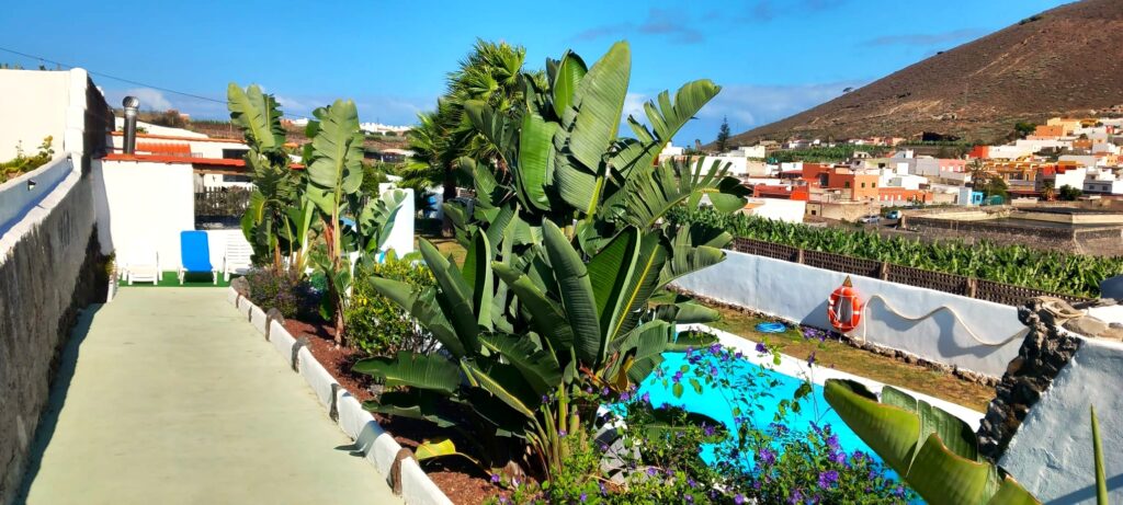 Auf der 8000qm großen abgeschlossenen Finca in grünen Nordwesten Teneriffas in der Gemeinde Los Silos liegt diese individuelle Ferienwohnung mit viel Platz, ebenso einem Stellplatz fürs Auto.